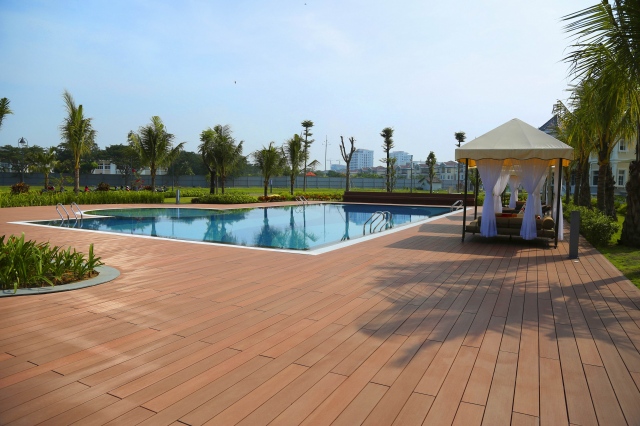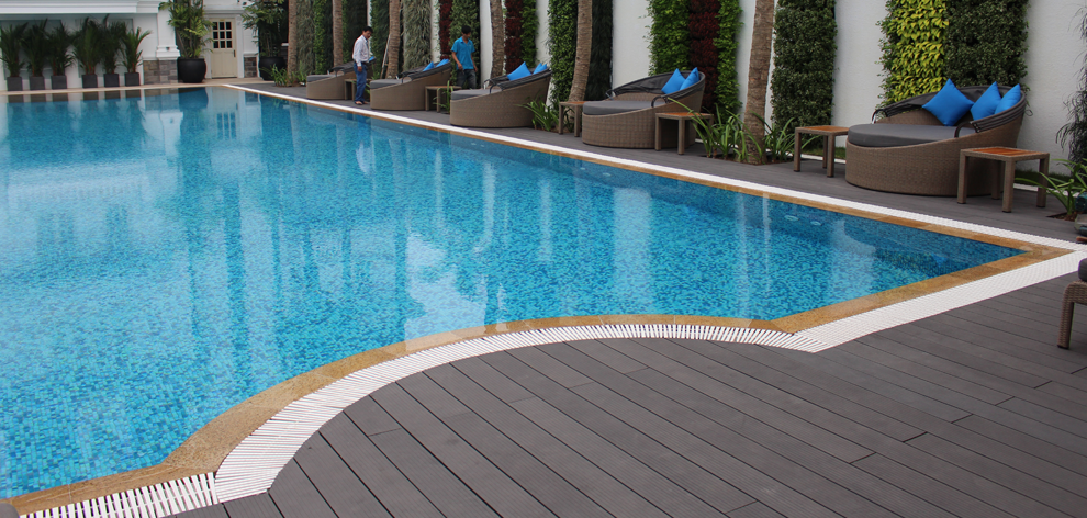 Gỗ nhựa ngoài trời Conwood sử dụng sàn bể bơi .