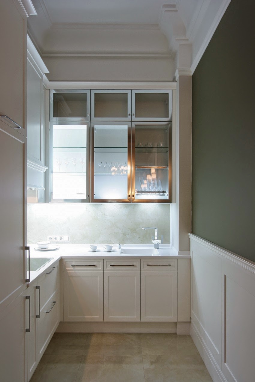 Phòng bếp với tông màu trắng làm chủ đạo nổi bật với thiết kế hiện đại cũng như sự tự tin khi bày biện các thiết bị nhà bếp hợp lý như: tủ bếp inox, …