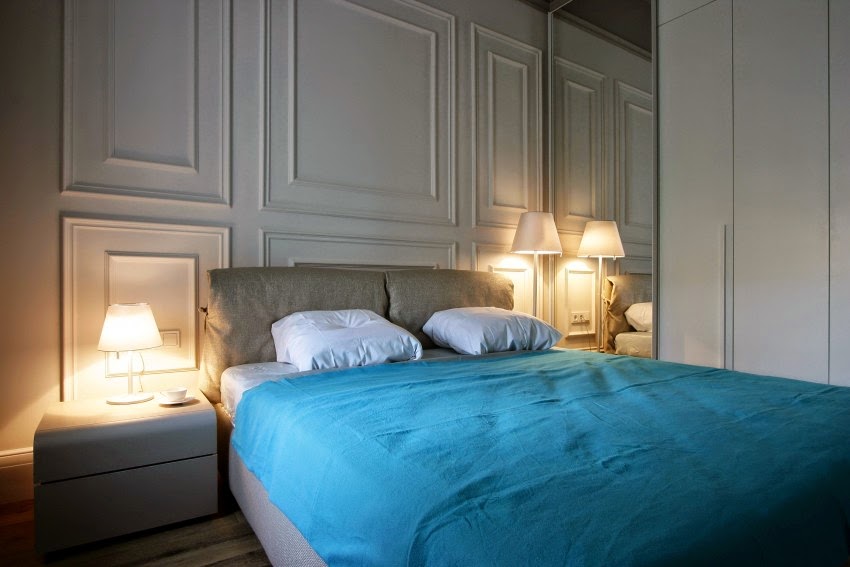 Căn phòng sang trọng hơn khi được trang trí hệ thống đèn chùm cao cấp, đèn chiếu sáng và điểm xuyến vào chính là bộ gương ấn tượng treo trên tường.