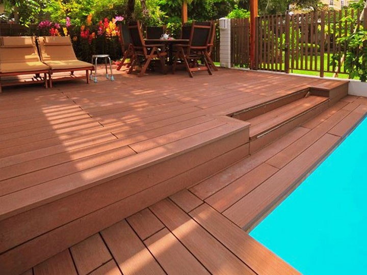 San go nhua ngoai troi cao cấp được ứng dụng cho sàn ngoài trời. Sân vườn, quán cafe rất sang trọng và lịch sự. Nếu bình thường ta sử dụng sàn gạch, hoặc sàn bê tông . Thì không gian có vẻ như nhàm chán. Còn khi ta sử dụng vật liệu sàn gỗ ngoài trời. Thì cho ta một không gian thoáng đãng và rất sang trọng.