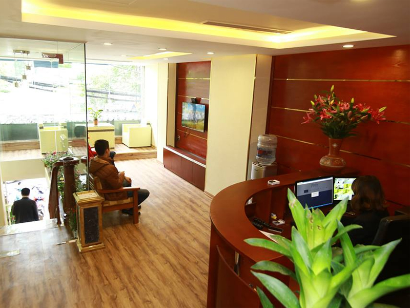 Sàn nhựa hèm khóa galaxy được sử dụng cho khu vực quầy lễ tân tại khách sạn 3 sao .