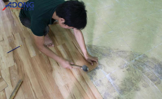 Thi công sàn nhựa dán keo – giả gỗ